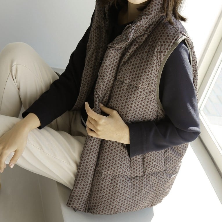 NAME. [덕다운]하이넥 패턴나염 패딩조끼