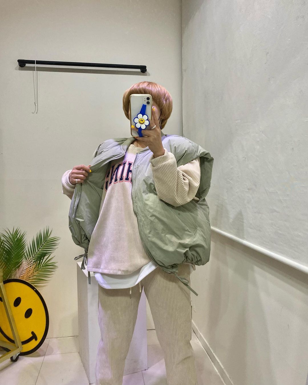 주줌 조끼 아우터 패딩조끼 나염조끼 덕다운조끼 다운조끼 하이넥조끼 패딩 ootd 오오티디 데일리룩 dailylook 패션 가을 겨울