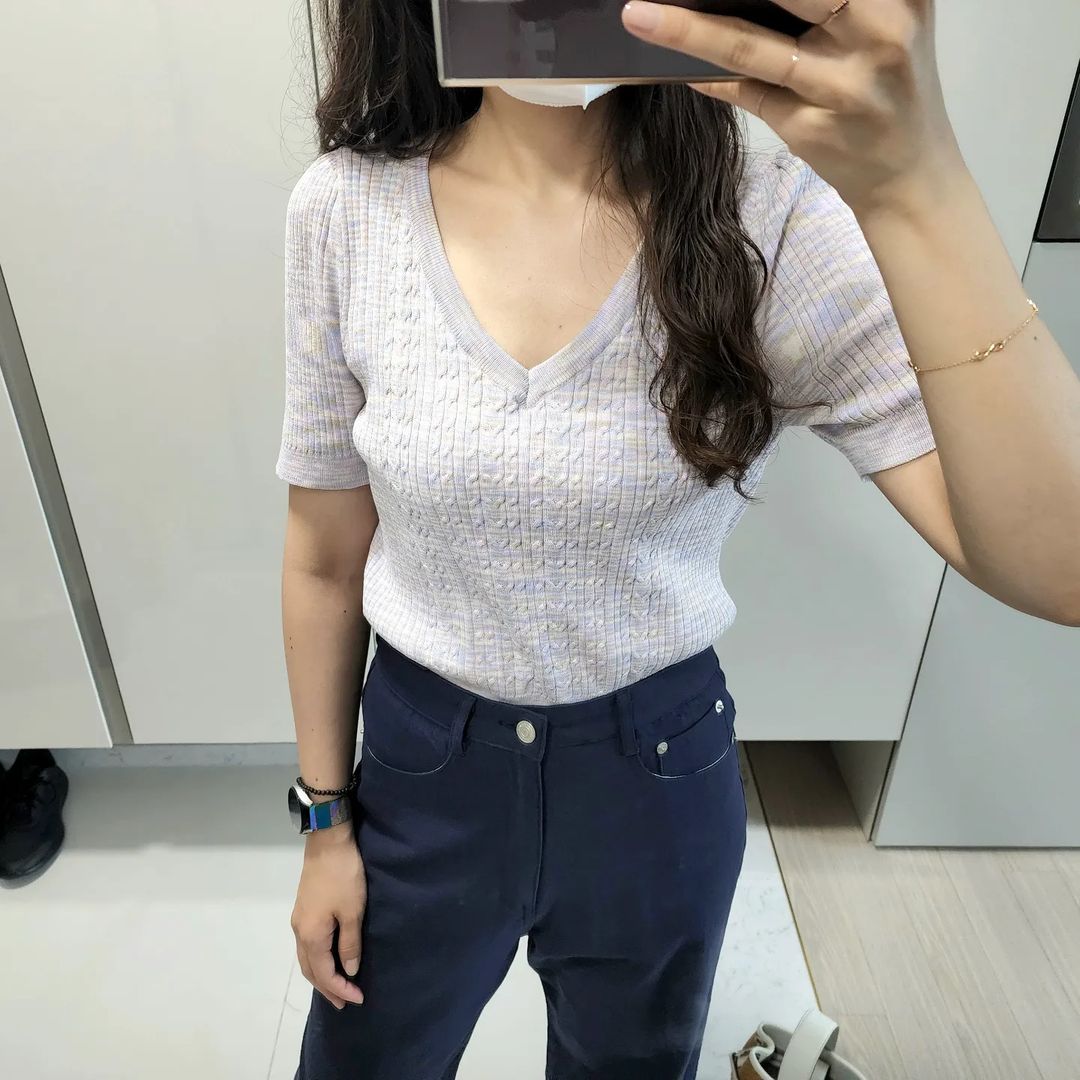 나인 슬림 스퀘어넥 골지 니트 T-6585