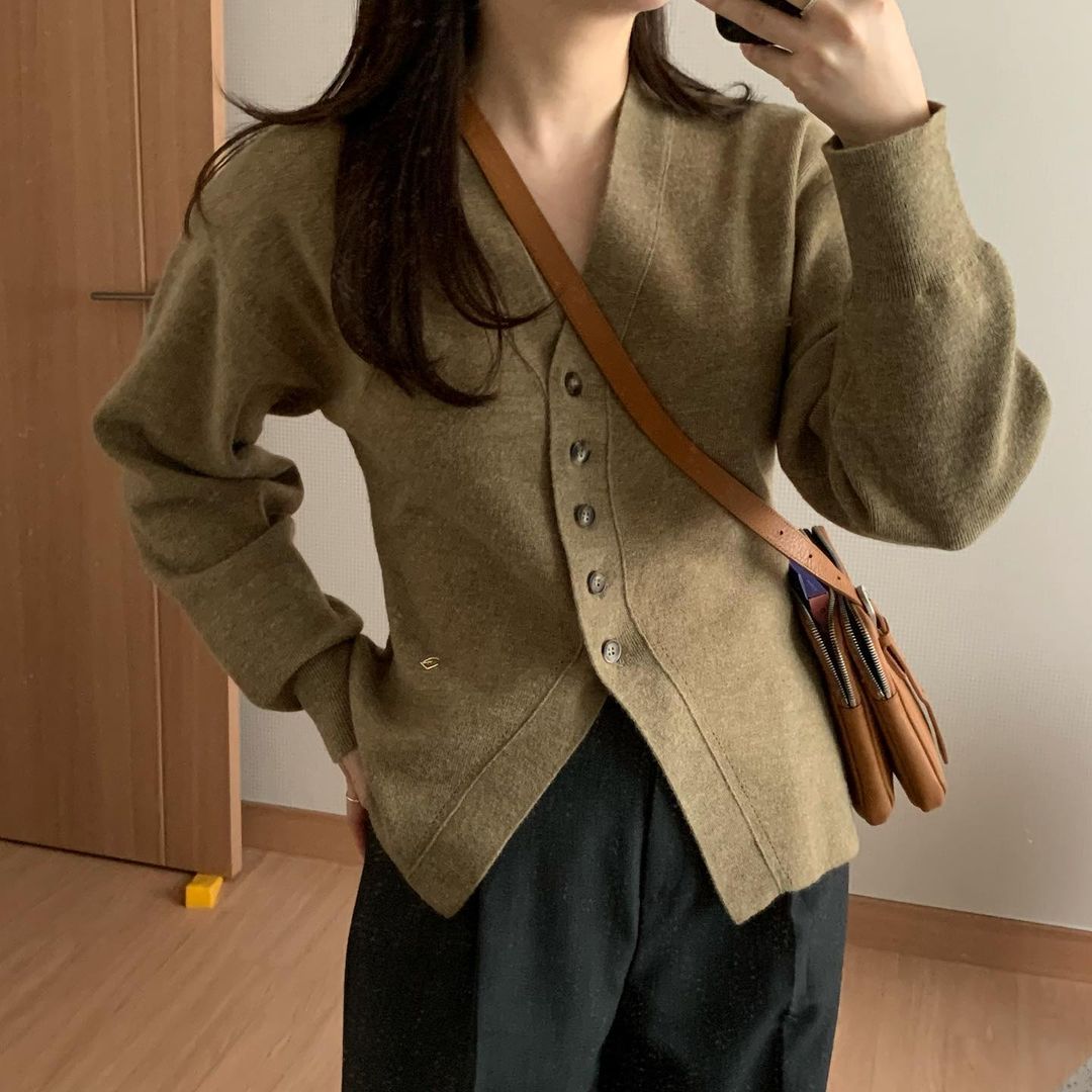 나인 모던 오픈 카라 니트 T5610
