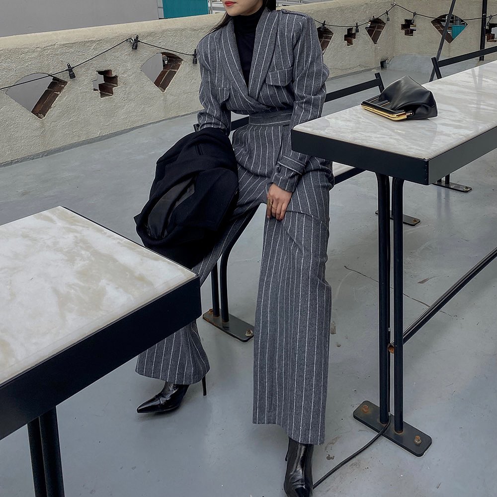 이어져 마치 투피스를 입은듯한 느낌이 드는 자켓스타일!