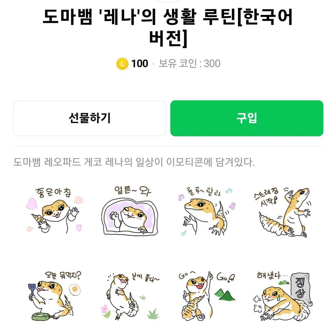 라인에 이모티콘 두 번째 제안했는데 바로 승인 판매 된 반려도마뱀 레오파드게코 레나예요.