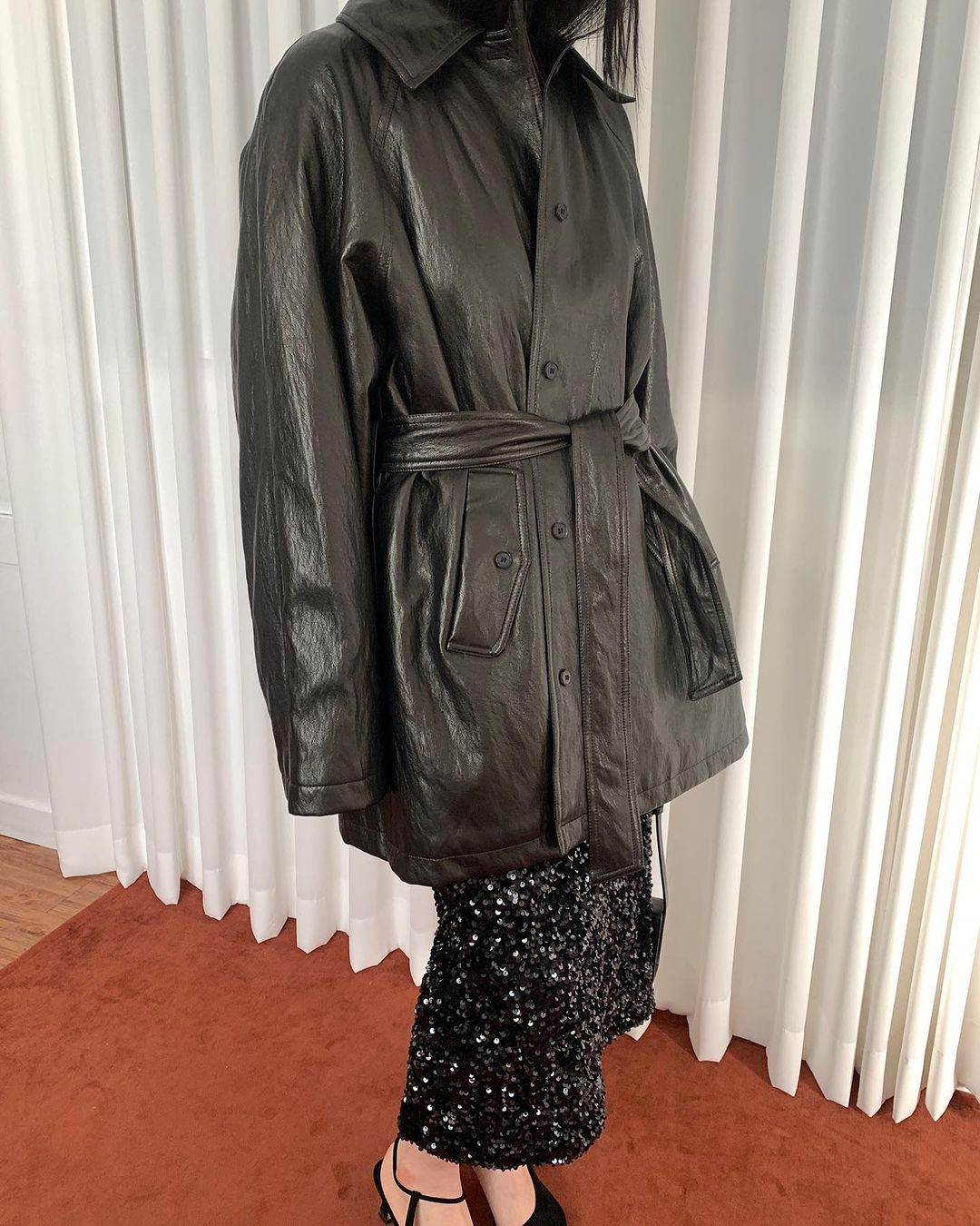 All black 🖤 “한 겨울에도 가죽은 못 참 쥬!” 코트 이여라 안감이 2온스 누빔이라 포근하게 따땃하게 ☃️