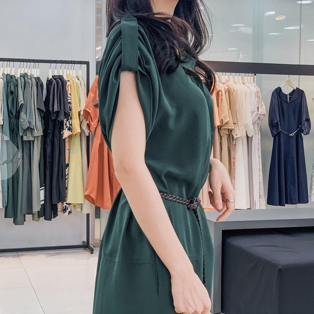 어깨 셔링이 뽀인뚜인 원피스예요😚 차르르한 원단으로 터치감이 너무너무 시원하고 생활주름도 거의 없는 활용성이 좋은 원단이랍니다!