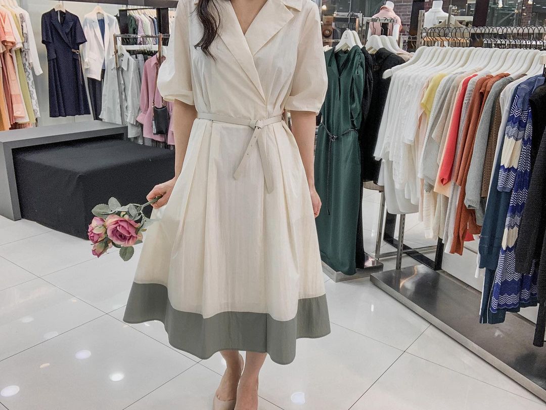 퍼프원피스 배색원피스 벨트원피스