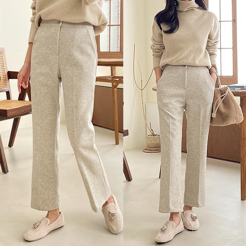 라이브 브레트 밍크 기모 밴딩 일자 롱 팬츠