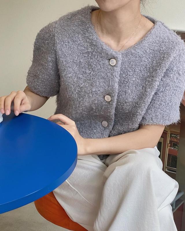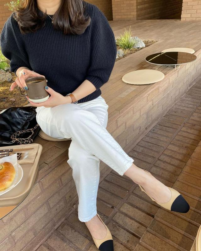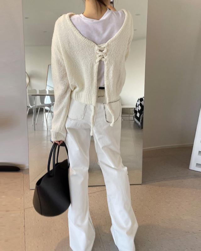 봄신상✨ 요거 원래 가디건인데 뒤집어서 연출했거든요? 성공적🤍 가디건으로 착용하셔도 좋지만 사진처럼 뒤집어 연출하시면 유니크한 반전 매력의 트임 니트가 돼요 통통한 니트 재질의 아일렛 매듭까지 스타일리쉬하면서 포인트가 많은데 또 과하지 않은 딱 제 스타일🤍