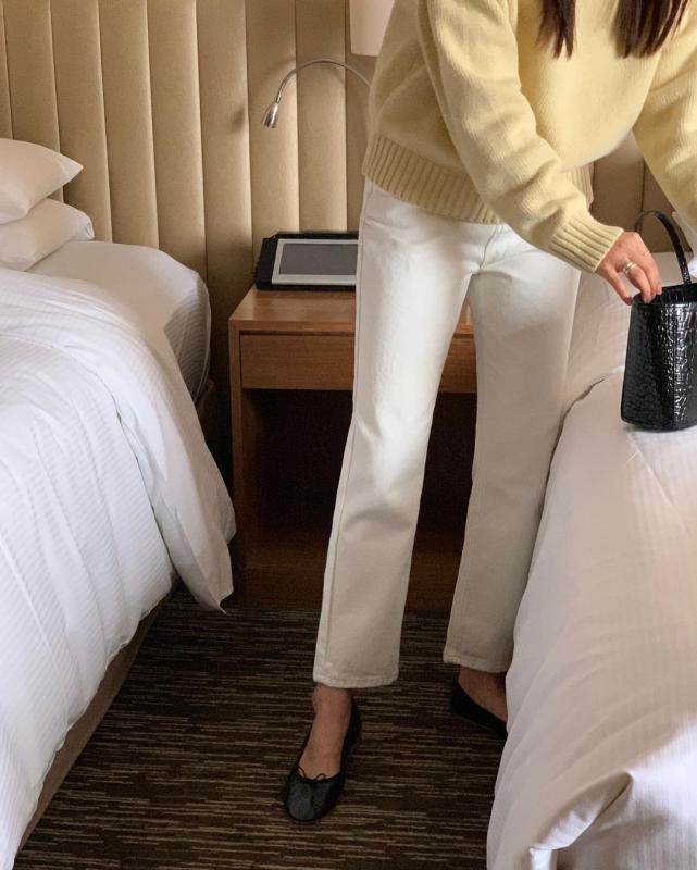 (당일) 버베인 콘 레귤러 화이트 데님 팬츠