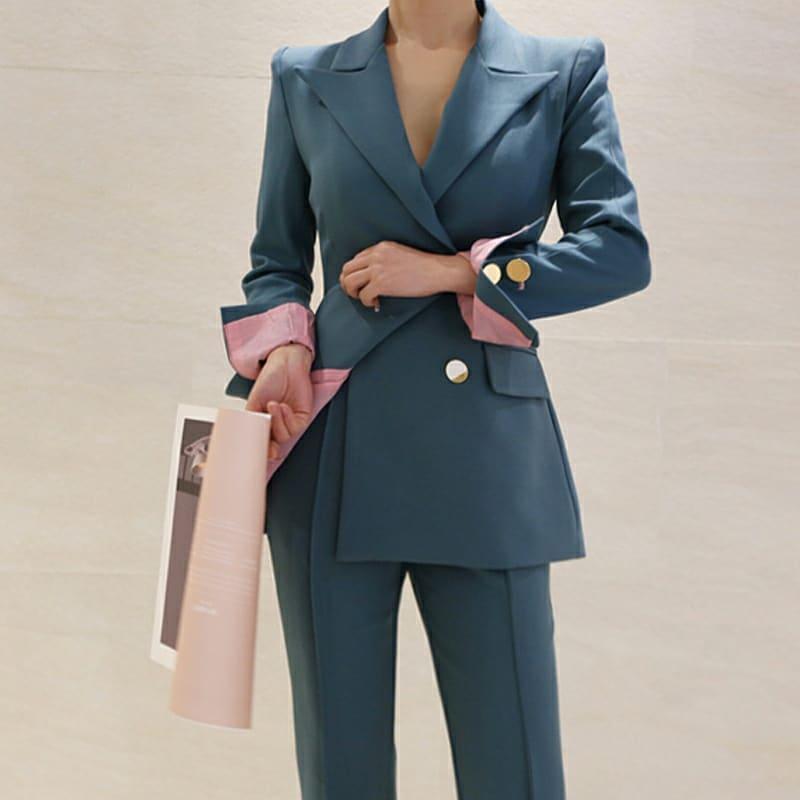 더블 여성 투피스 정장 수트