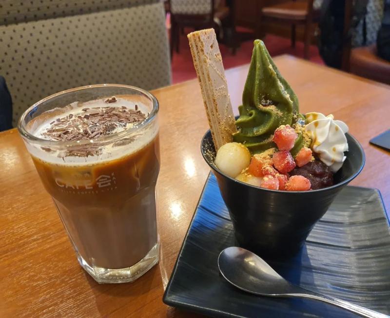 모카마끼아또와 진한 녹차 아이스크림, 당고, 딸기 다이스, 팥이 들어있는 파르페 먹었는데 둘 다 만족이었어요 👍