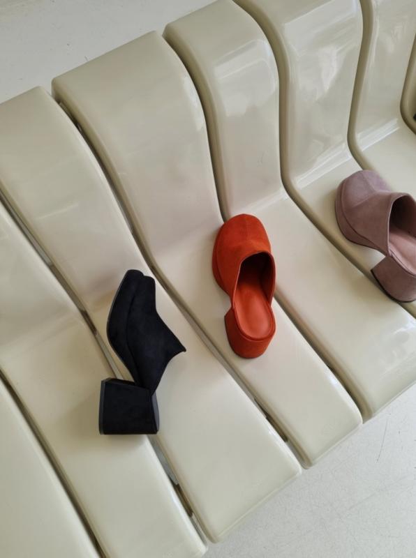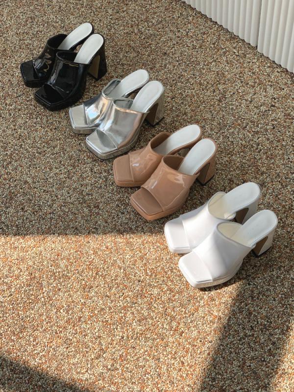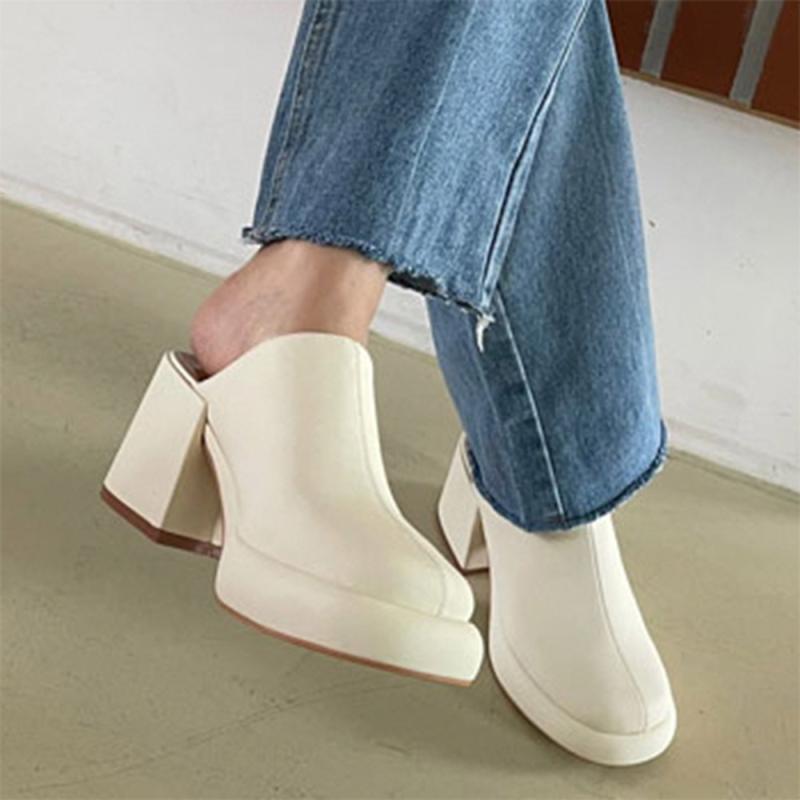 🔎 아웃솔 스티치 스퀘어 사각코 가보시 통굽 뮬 슬리퍼힐 블로퍼힐 7cm