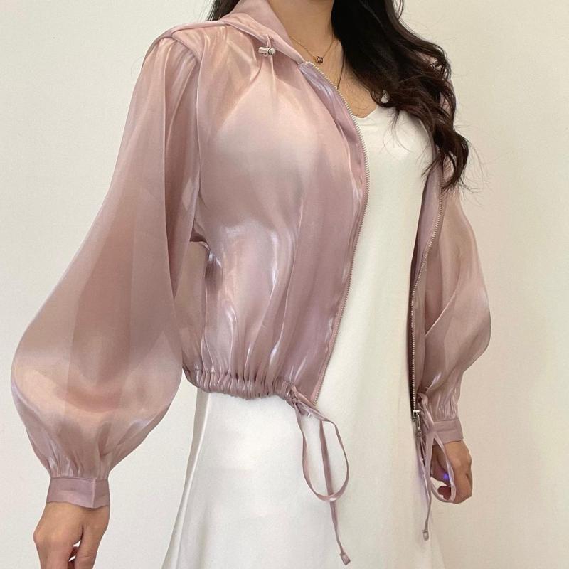 여름점퍼 얇은블루종 블루종 루즈핏아우터 루즈핏점퍼 집업 여름집업 시스루아우터 하이넥집업