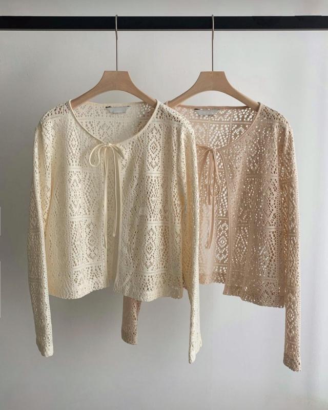 전체적인 펀칭 디테일로 아름다운 쉐입 그 자체🪽🪽금속 장식이 포인트로 들어간 너트 단추부터, 넥 라인 스트링으로 묶어주는 포인트까지.