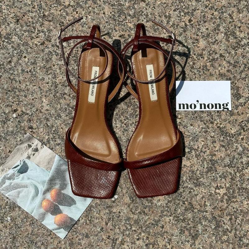 발목을 잡아주는 스트랩과 쿠션감이 충분한 5cm의 미들힐 샌들입니다.