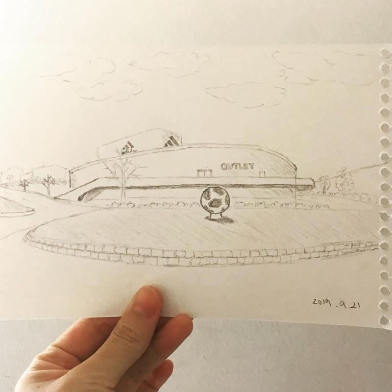 넓은 평수의 아웃렛 건물을 그려주셨어요! 살짝 확대해보면 브랜드도 보인답니다? 선의 강약도 잘 주셨고 비율도 잘 맞추셨어요⚽️😄👍🏽