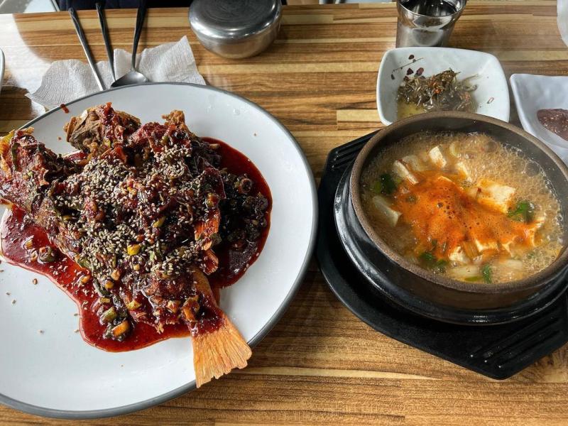 이번 제주 여행에서 가장 궁금하고 기대한 음식은 우럭튀김 정식이다. 맛도 기대 이상인 한식이었고, 여기에 덧붙여 예상치 못한 퍼포먼스가 있어 맛이 더 찐하게 느껴졌다.