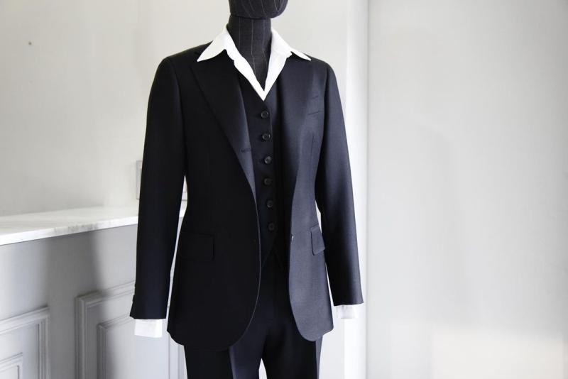 오랜 연구끝에 나온 유려한 설계도의 풀 캔버스 비스포크 여성 수트의 우아함이 돋보이는 3피스 셋업 수트는 라바르카비스포크 쇼룸에서 경험해보세요.
