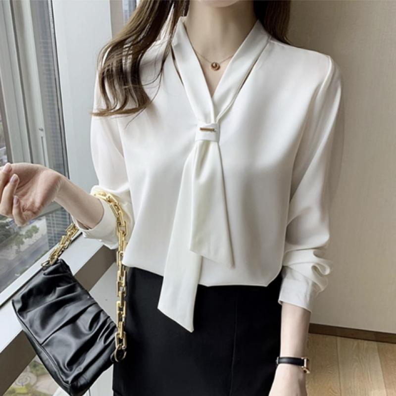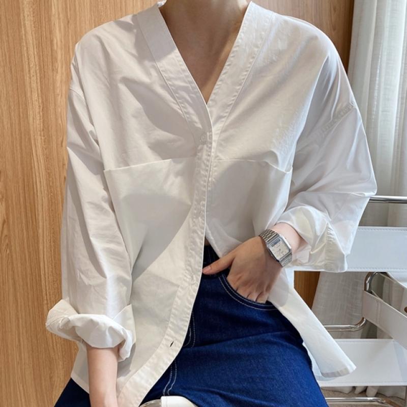 더웨이나인 브이넥블라우스 V넥 흰블라우스