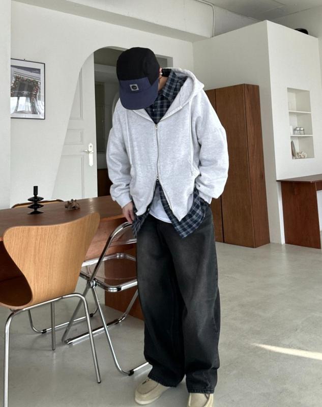 후드가 레이어드되어서 캐주얼한 느낌을 주기 좋고 헤어끼가 있는 두께감 있는 원단이라서 탄탄하고 보온성도